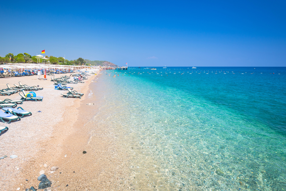 The sea in Tekirova is crystal clear and clean. The beach structure is typically a mix of pebbles and sand.